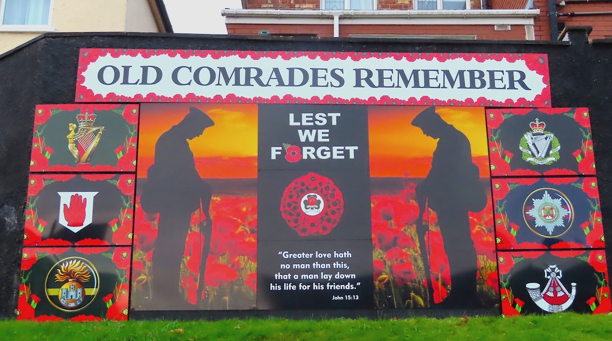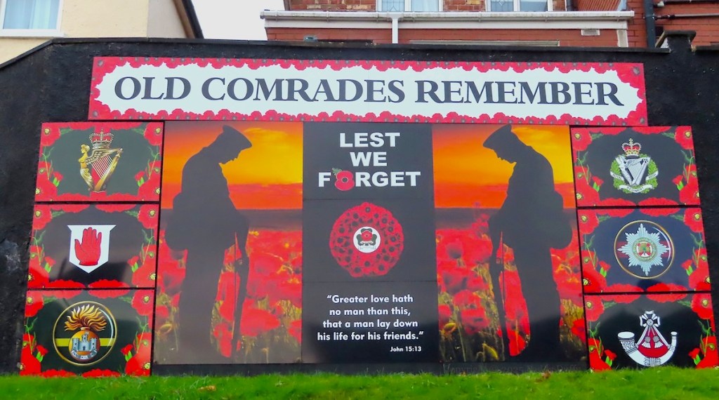 This entry updates the images seen in November’s Lest We Forget, with the addition of six military insignia to either side of the ‘Old Comrades’ board that was added just after Remembrance Sunday.