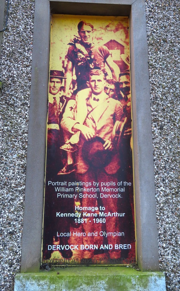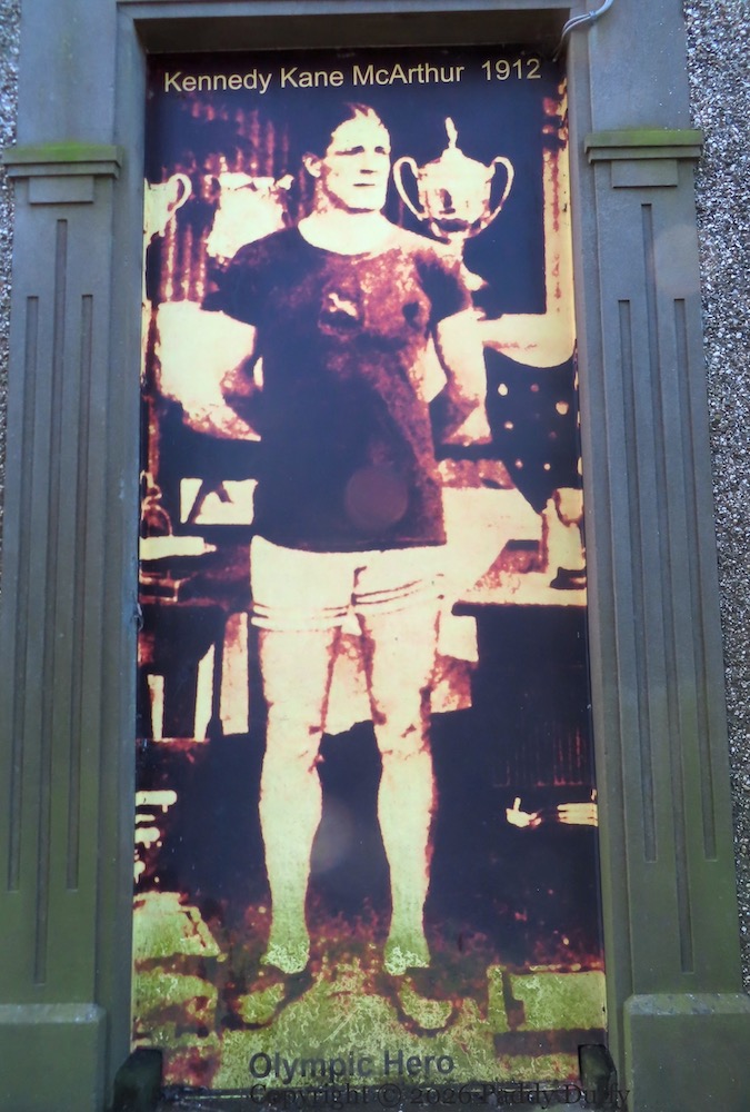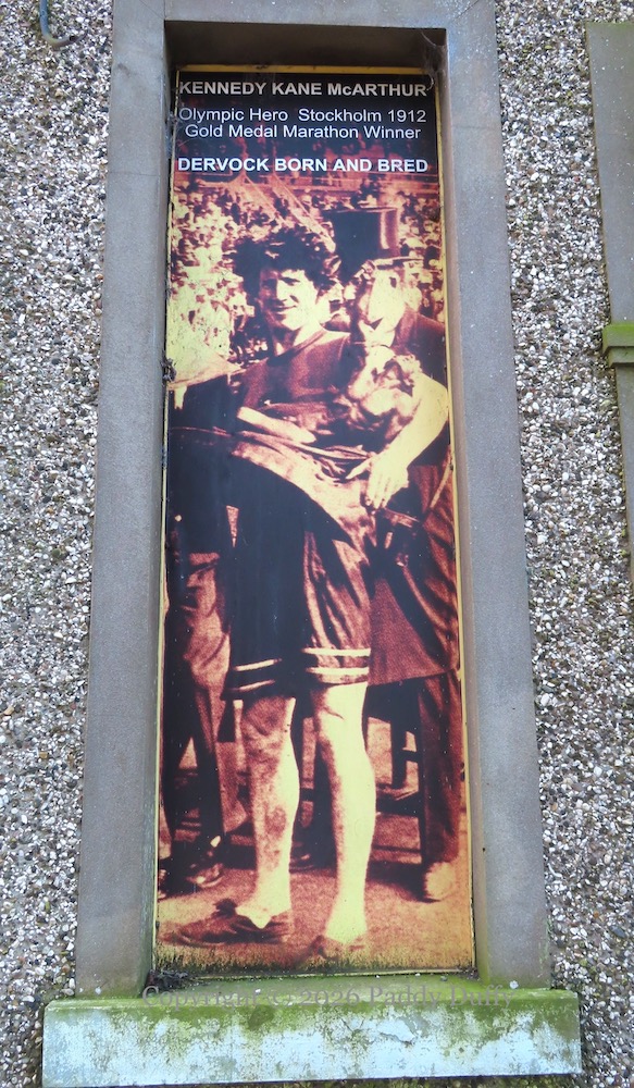 “Kennedy Kane McArthur, Olympic hero, Stockholm 1912, gold medal marathon winner. Dervock born and bred.”