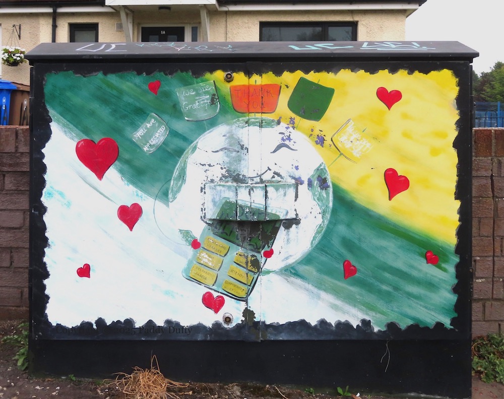 Here are some painted junction boxes in CNR west Belfast: