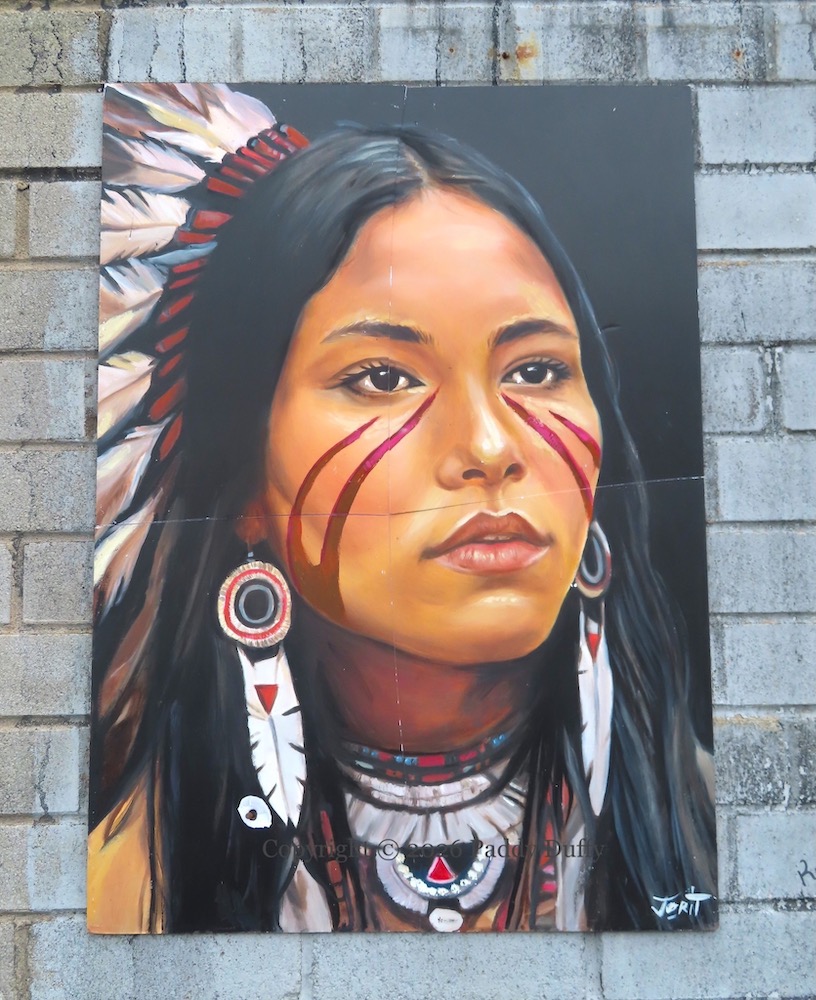 The painting has been mounted on Northumberland Street (Visual History), west Belfast, in a vacant spot left by the Climate Change board which dates back to 2012 and which was seen most recently with a Martyrs’ Committee board placed on top (T05821).