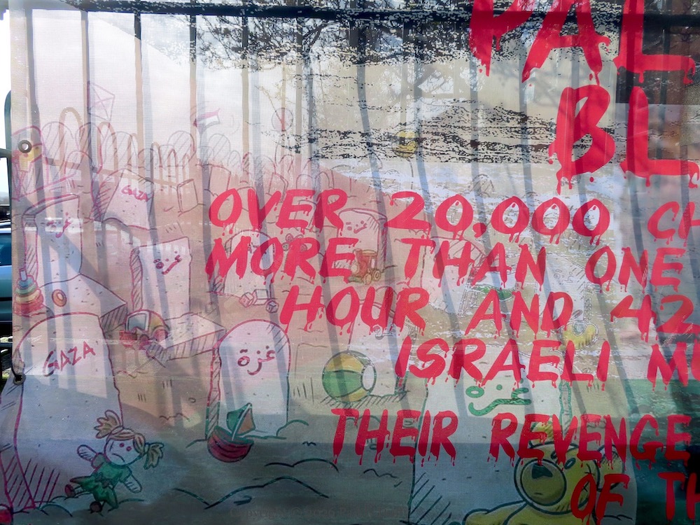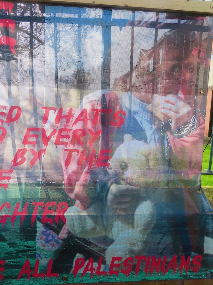 “Palestine bleeds. Over 20,000 children killed. That’s more than one child killed every hour. And 42,000 injured by the Israeli murder machine. Their revenge will be the laughter of their children. Andersonstown stands with Palestine. We are all Palestinians.” The figures perhaps come from a Save The Children report from September, 2025.
