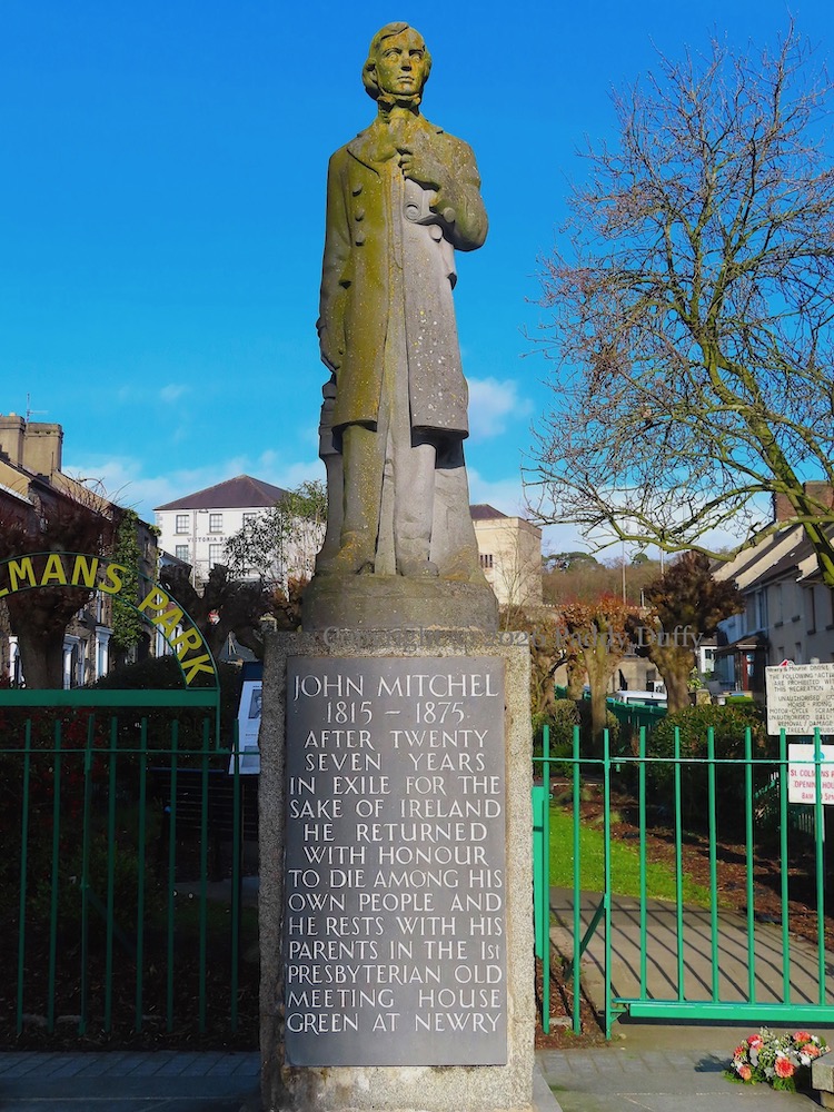 “John Mitchel 1815 – 1875 After twenty years in exile for the sake of Ireland he returned with honour to die among his own people and he rests with his parents in the 1st Presbyterian old meeting house green at Newry.”