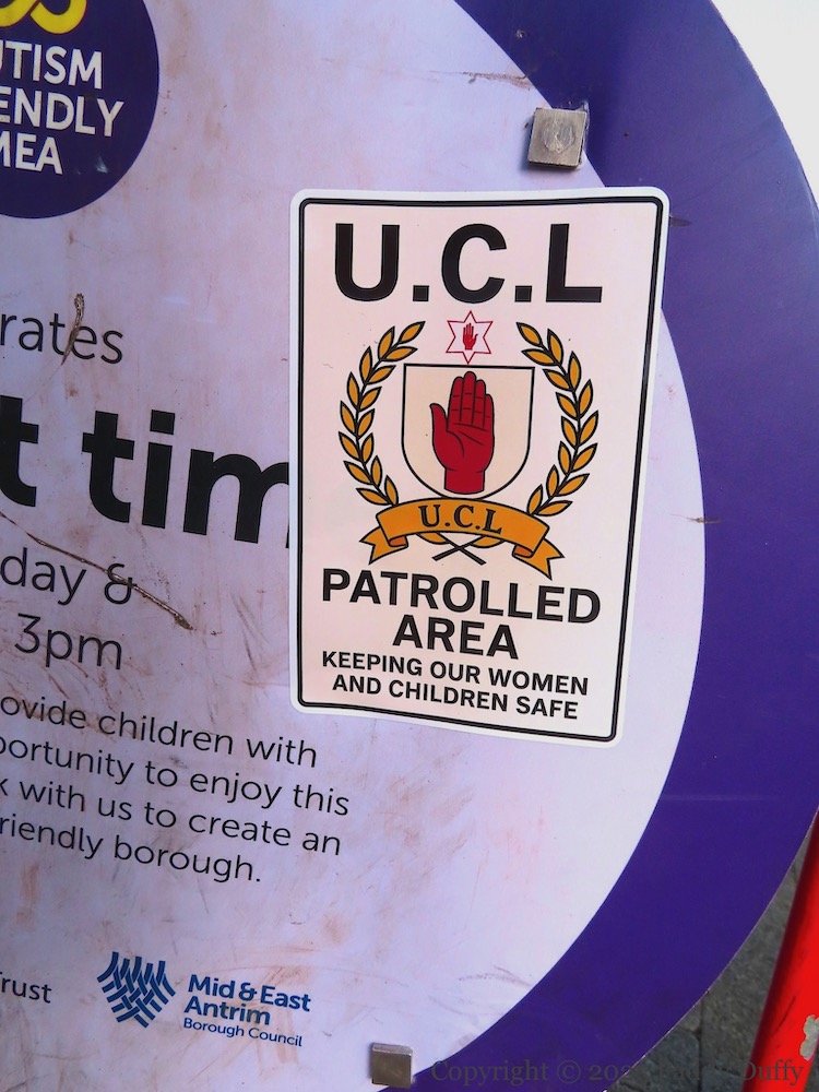 The only mentions of the U.C.L./”Ulster Carrickfergus Loyalists” on-line come from a Facebook page of an individual called Dean Martin. The account describes the UCL as “newly-formed” in January, 2026 but the sticker in the third images dates back to October, last year (2025): “U.C.L.-patrolled area – keeping our women and children safe.” This suggests that the group was formed following the anti-immigrant riots last (2025) summer. See also Keep Our Kids Safe | One Big Clean Up | Stop The Boats | Protect Our Children.