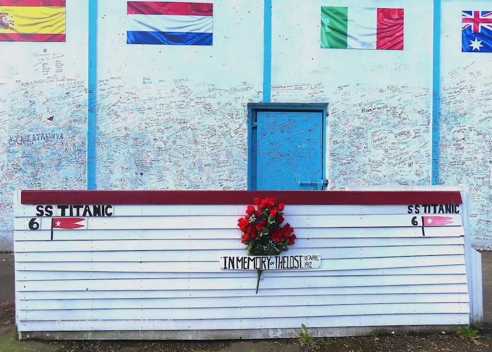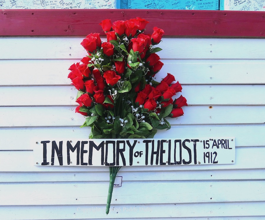 “In memory of the lost, 15 April, 1912.” The majority lifeboats on the RMS (not “SS”) Titanic were made of wood, constructed at Harland & Wolff at the same time that Titanic was built. Of the 2,209 people on board the ship at the time of her collision with an iceberg late in the evening of April 14th, 706 people survived in lifeboats that could have carried 1,178 people. (WP)