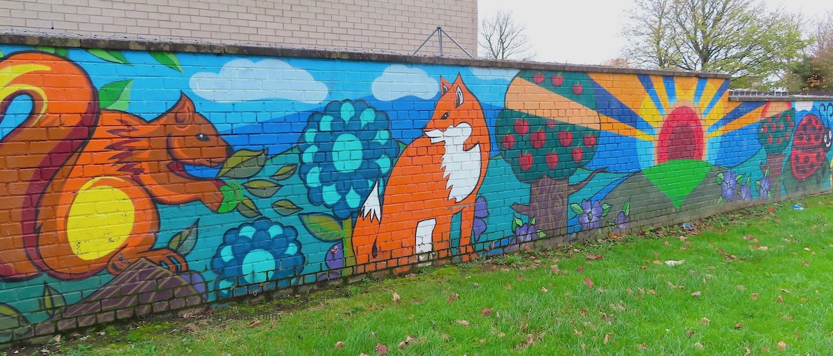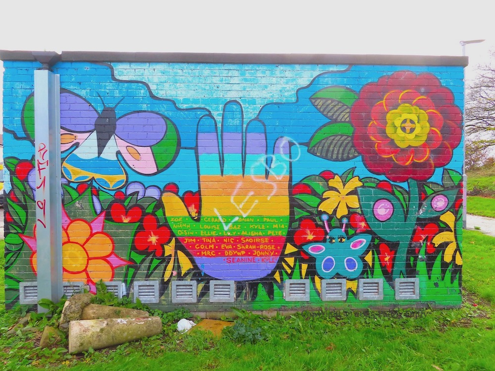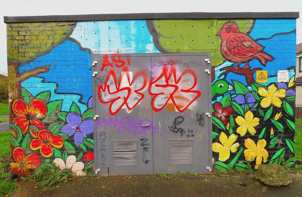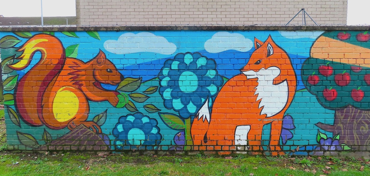 These paintings are in the Meadowbrook estate in Tullygally, Lurgan, painted by local children with support from Drumgor Detached Youth Work Project (DDYWP) (ig) (Community Facebook page).