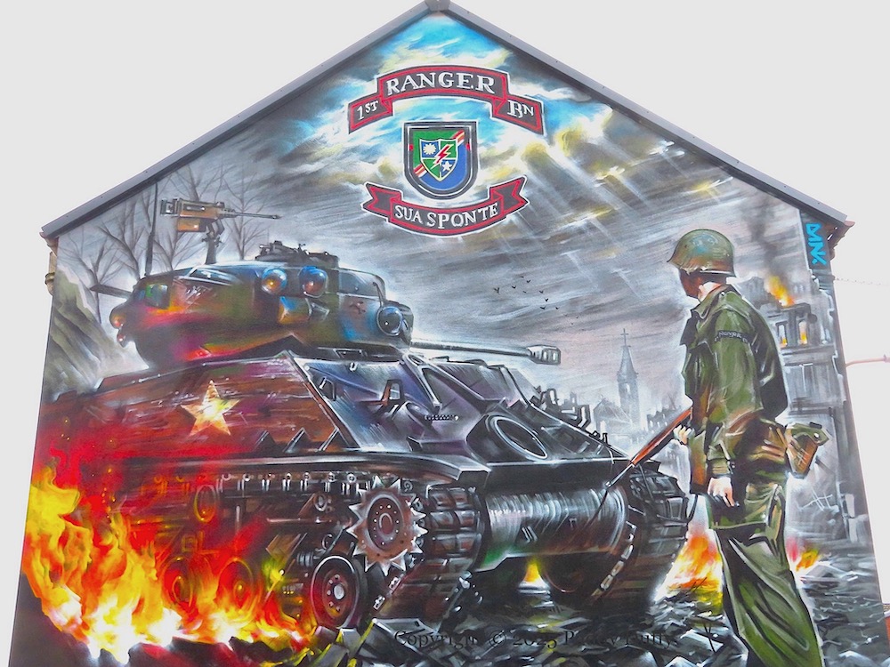 It has been criticized by street-artist Wee Nuls (web) as glorifying conflict (ig), a charge the artist rejects, saying that it was produced in co-operation with locals and has been well received by them (MSN). (See also the reactions on the Let’s Talk Loyalism Fb page.)