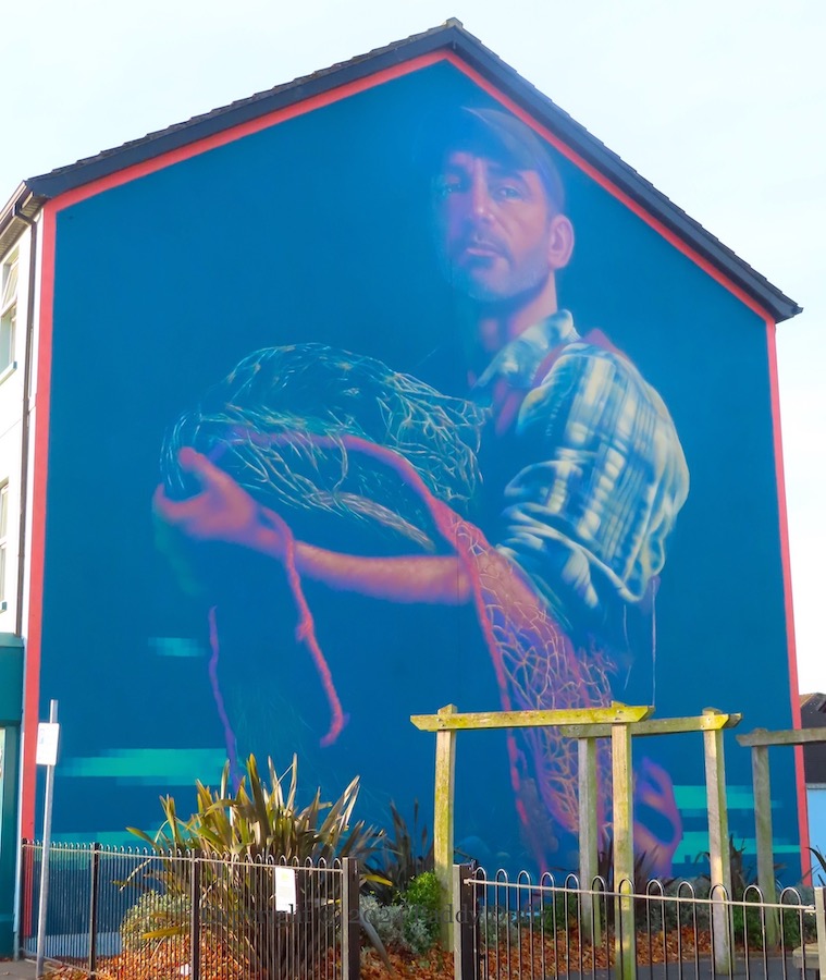 Katie Taylor and Carl Frampton are featured on the large mural at Antrim Boxing Club (Fb), painted by Visual Waste (ig) with support from the Housing Executive (Press Release), Antrim and Newtownabbey Borough Council, and the executive’s T:BUC programme (see previously Belfast Melt).