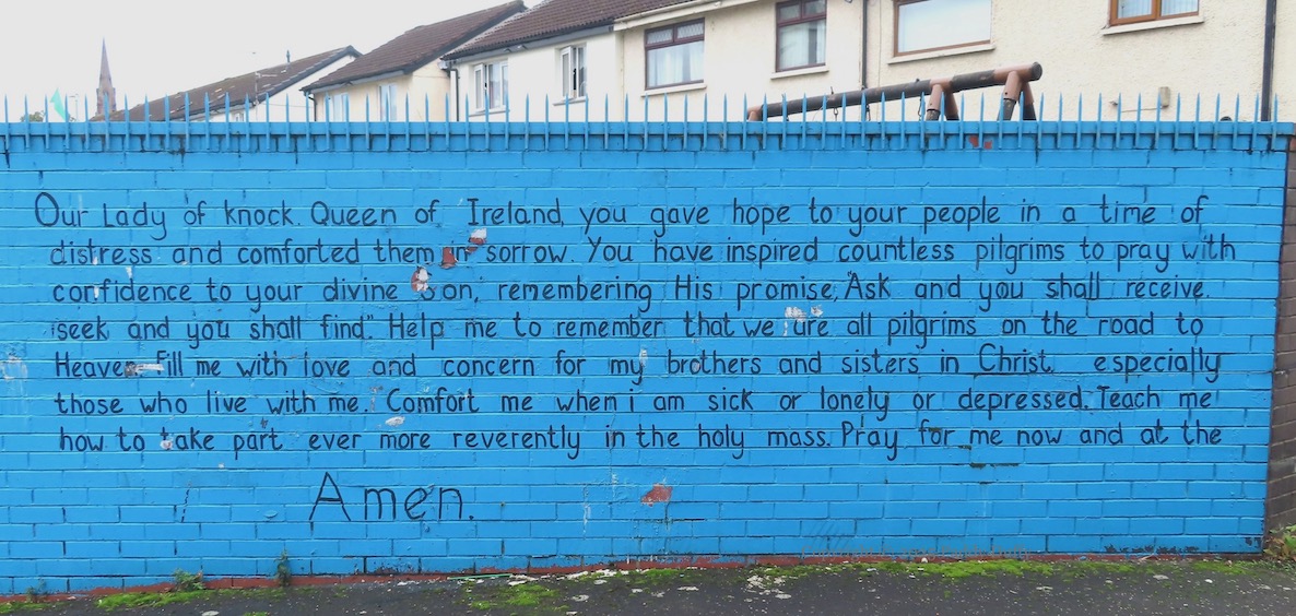 The Apparition At Knock took place on August 21st, 1879; there was a mural of the standard depiction of the event in nearby Newington (Street View).