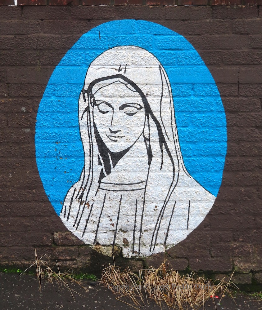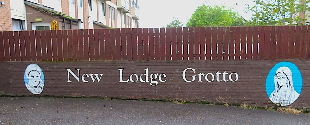 The presentation on the “New Lodge Grotto” side-wall (alongside St Thérèse) is of Our Lady Of Medjugorje. (There was a mural with the same title not far from the grotto.)