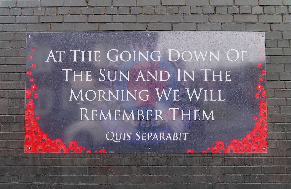 The side-wall, home to painted Orange Order symbols since 2017, has been painted black and a board (above) added to E company from Tiger’s Bay. (It’s possible “North Belfast brigade” and “3rd battalion” are the same thing.)