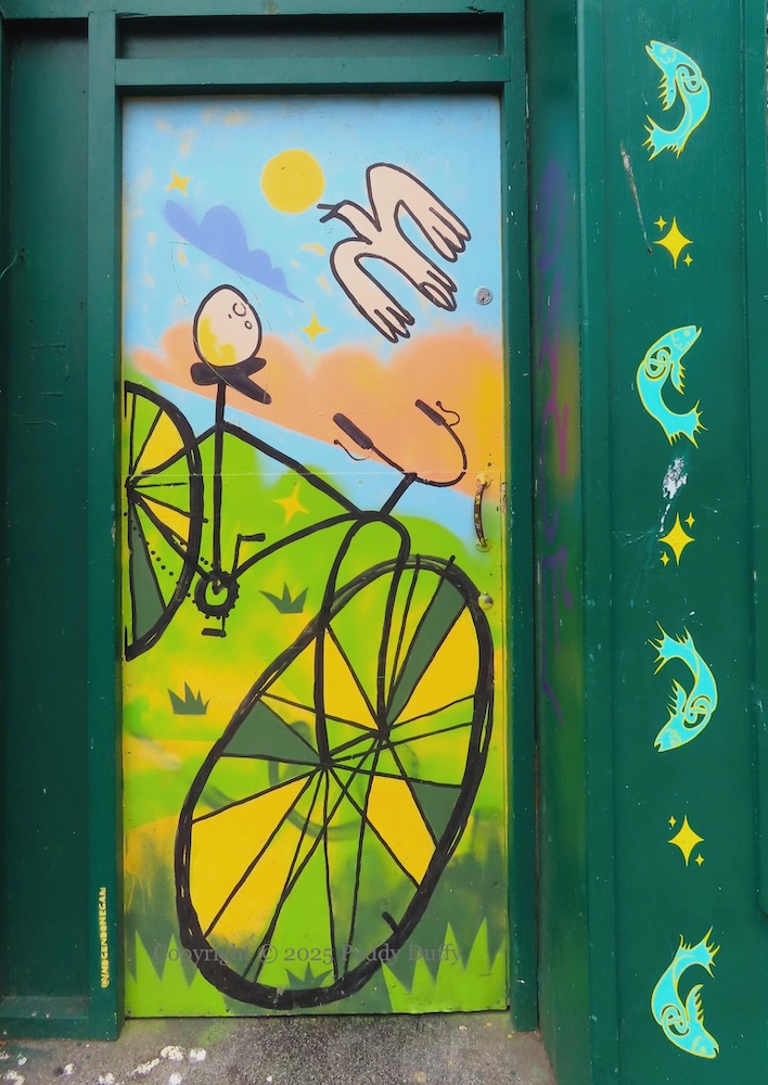 The works shown here are by Chain Gun Art (ig) (“Cheese, Please!”), Lost Lines (ig), Féoıl (ig), Rob Hilken (web), and Ana Fish (web). The Ana Fish piece is on shutters painted by Verz in 2012 – see North Street Will Rise Again.