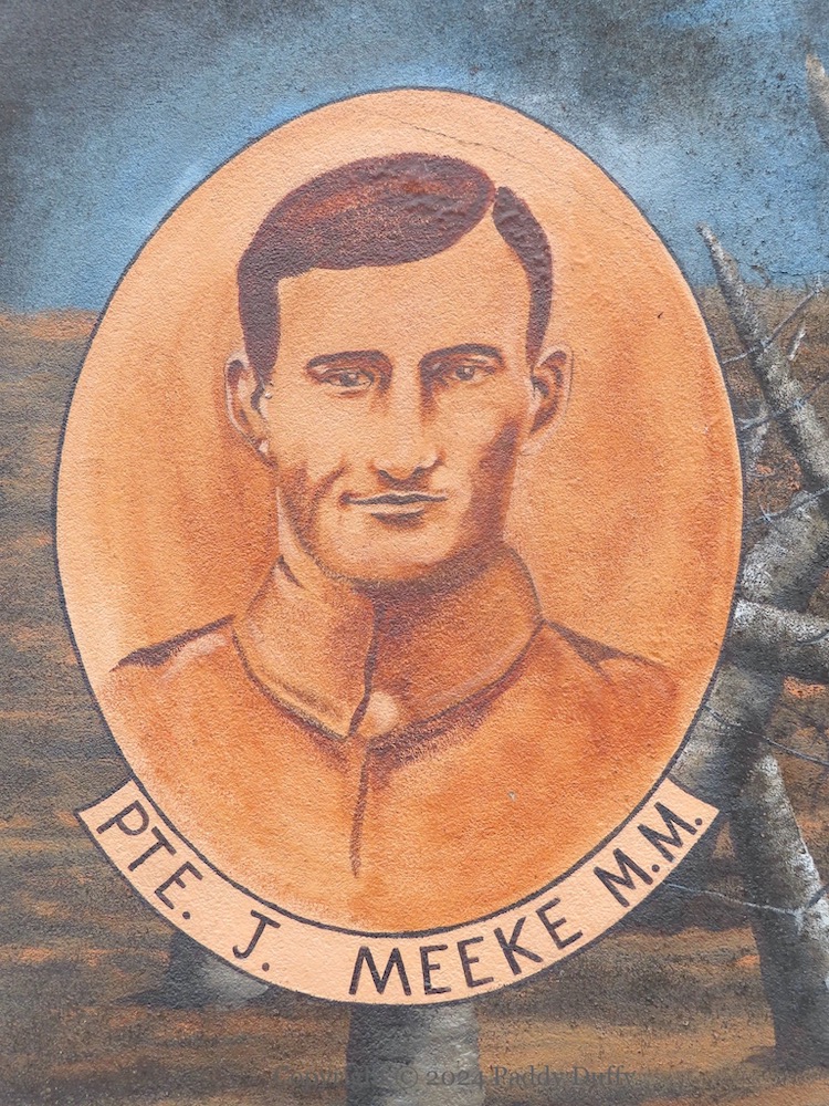 Major Redmond went over the top with the 16th (Irish) Division at Messines Ridge and was hit by machine-gun fire. Private Meeke, a stretcher-bearer with the Royal Inniskilling Fusiliers in the 36th (Ulster) Division, found and stayed with Redmond under heavy fire, taking two bullets himself.