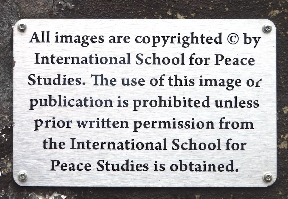This mural (and its very odd accompanying plaque, for a public mural) is in the Ebrington Centre car park, in the Waterside, Londonderry.
