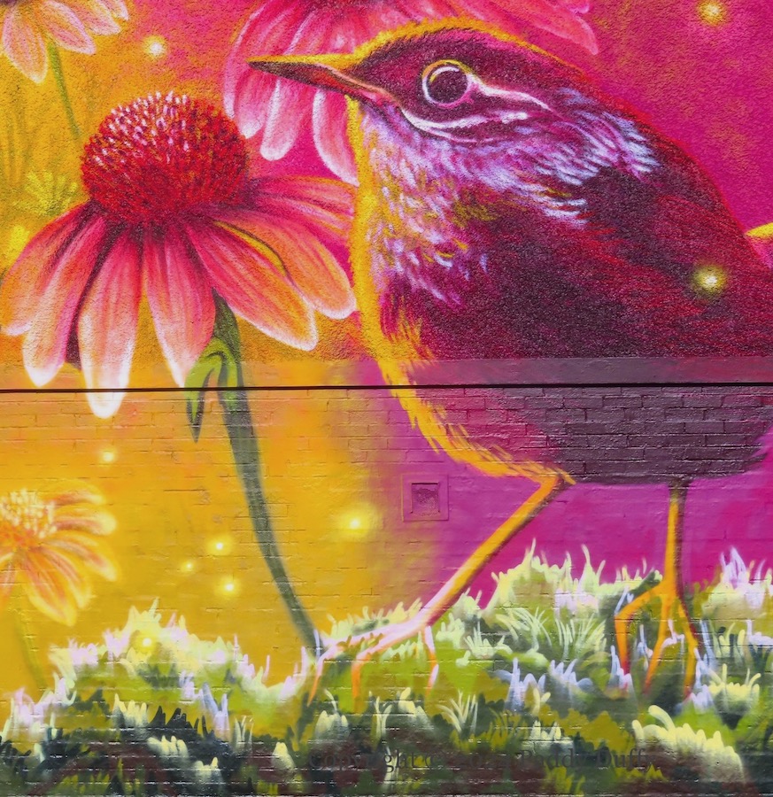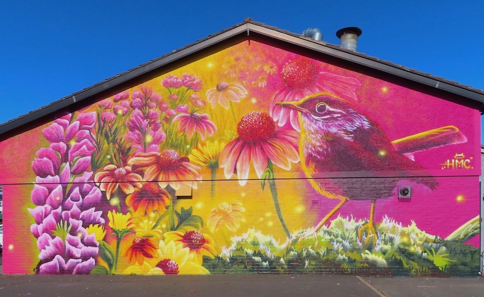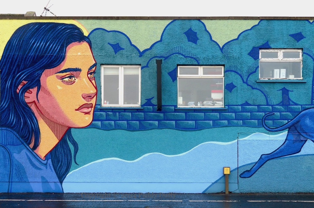 Hazelbank (House) was blown up by the IRA in the 1970s (The Burn) and Macedon (House) was demolished after being closed in 1981 – their grounds became Hazelbank Park (History Hub Fb). The towers on the promenade by the shore provide a backdrop for this Lidia Cao (ig) street art on the Shore Road.