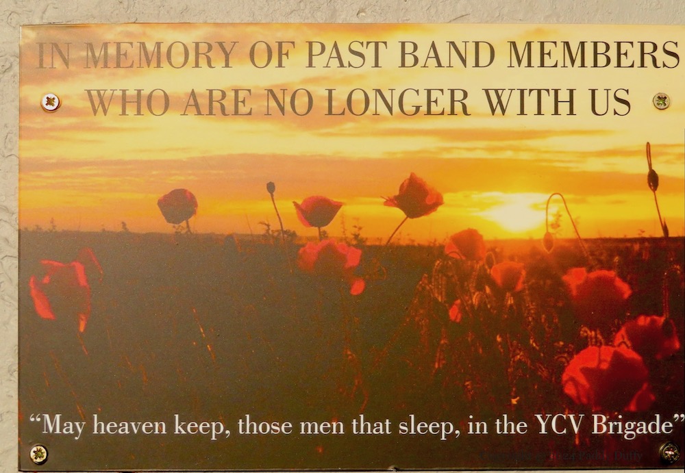 “So now we’ll toast to those four young men from back in ’74/Did they think their dreams would still live on for 50 years and more/So raise a glass to those four young men and the dream they had made/To name the band in memory of the YCV brigade.”
