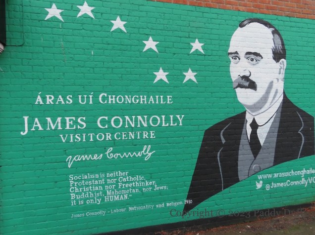 Stewartstown Road, west Belfast. For the same stencil of Connolly, though providing a better representation of the man, see Time For A Socialist Republic.