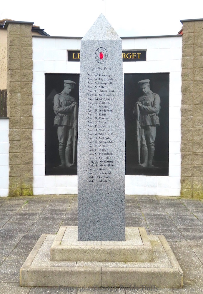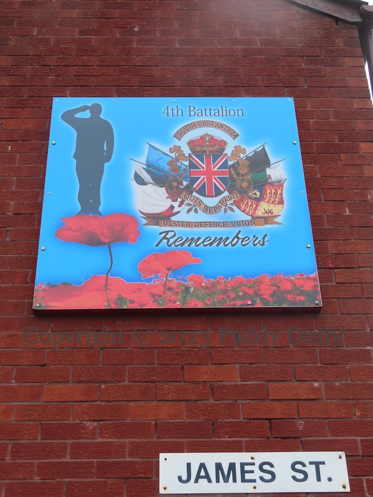On the left: “Jim Holt – forever remembered – forever in our ranks [of the UVF]. West End Somme Association, Glasgow.” There is a large board to Holt in Beechfield Street.