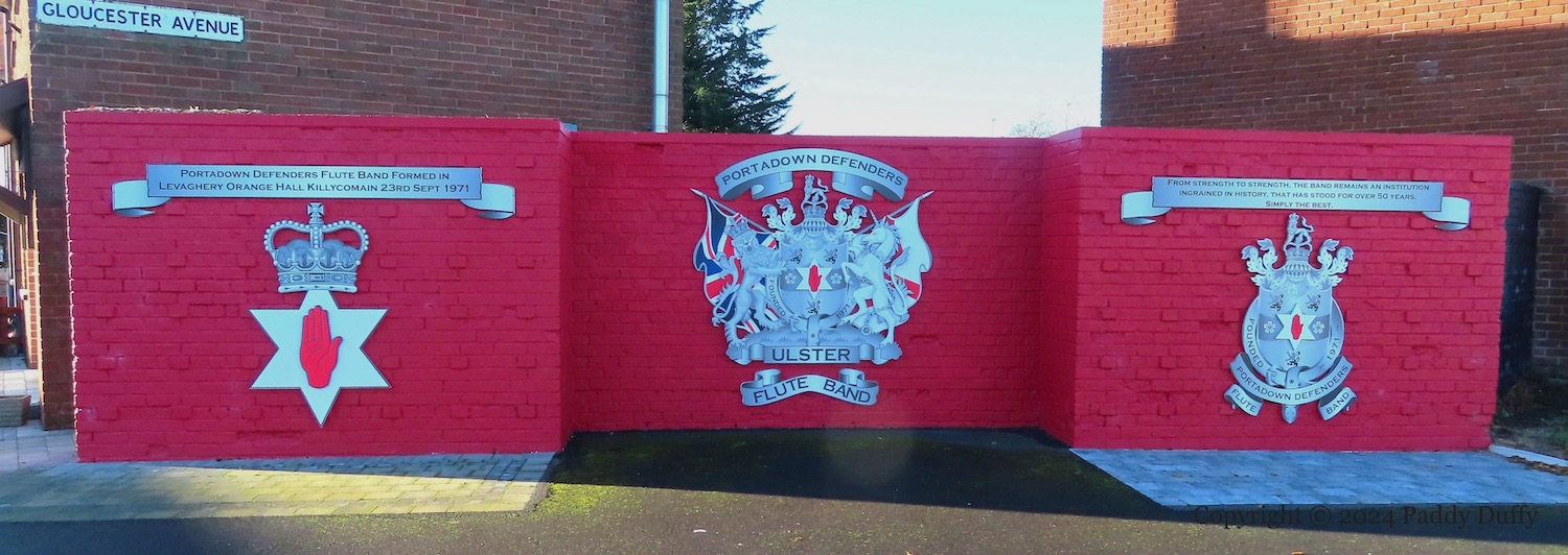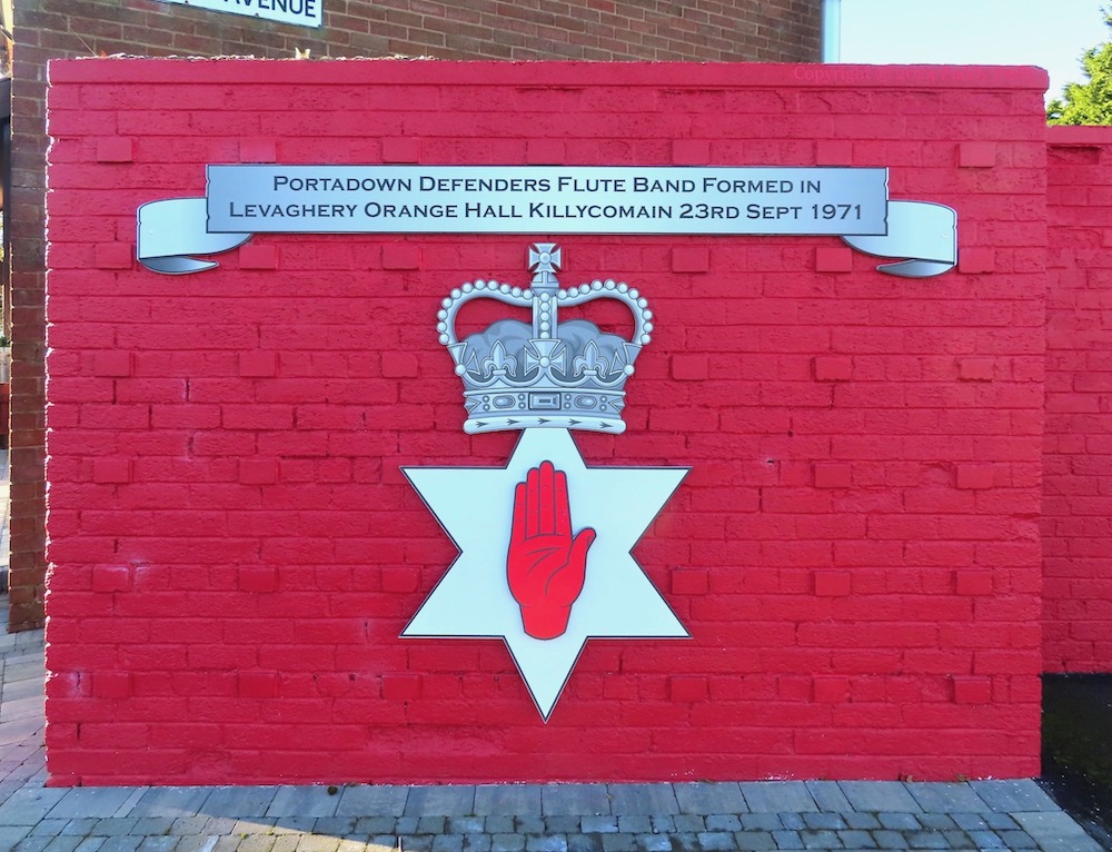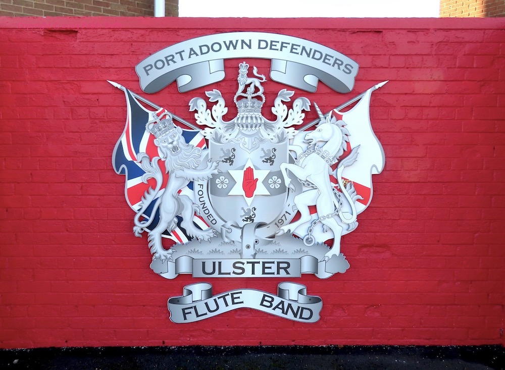 Portadown Defenders flute band (Fb) unveiled this new installation on April 6th (Fb). The band also has a board in Union Street. The the lion and the unicorn (above) are from the UK coat of arms
