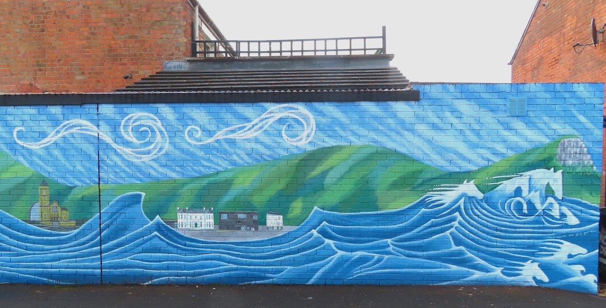 This new art shows Columba in a leather-covered wicker currach sailing – with two of his twelve companions – to Scotland c. 563. The piece reproduces a commemorative stamp released in 1997 as one of four in a set of UK stamps designed by Clare Melinsky (web) called “Missions Of Faith”, two showing St Columba and two St Augustine (Collect GB Stamps).