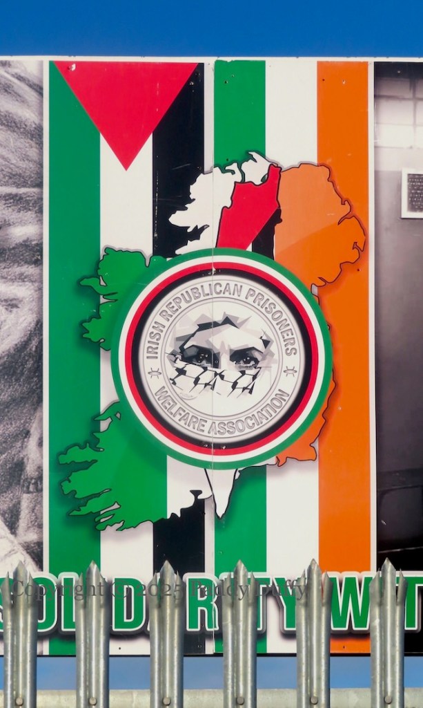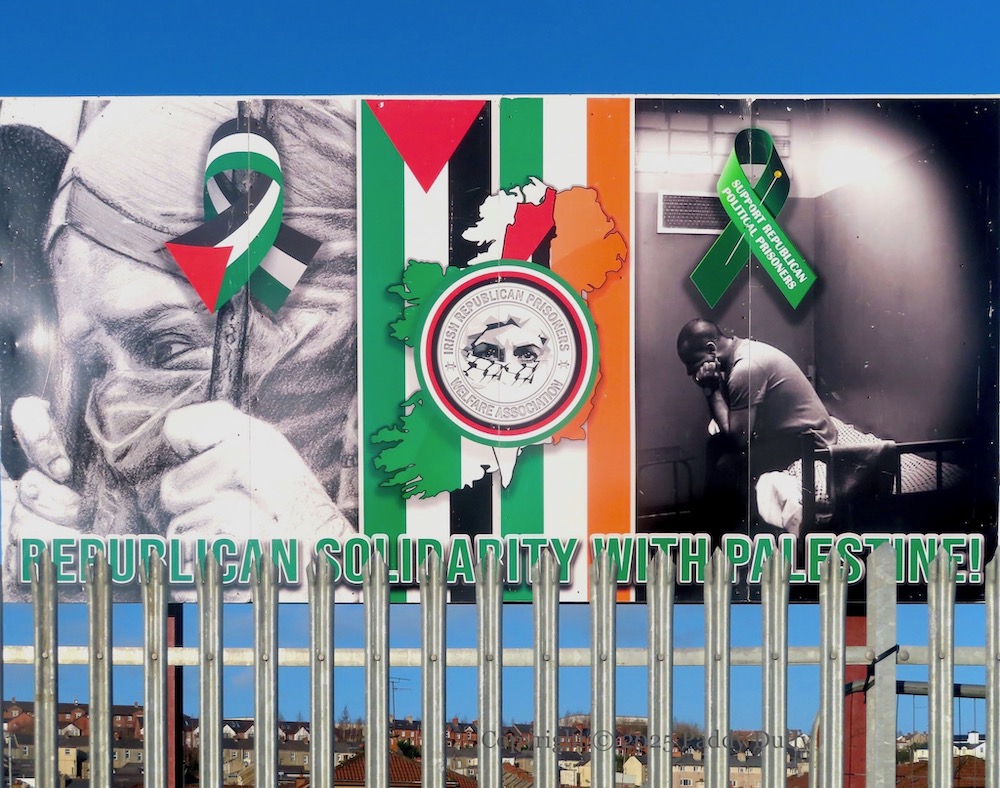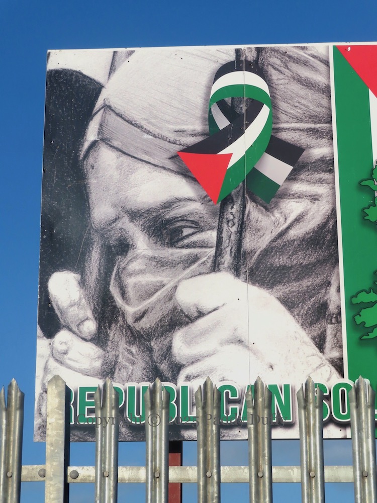 This Lasaır Dhearg (web) board in Lenadoon is explicit in defending the use of physical force by Palestinians (specifically by the Popular Front For The Liberation Of Palestine – WP): “Palestine has a right to resist. The Palestinians have a legal and moral right to resist the illegal occupation of their land by the Zionist settler entity known as ‘Israel’. We support a one-state solution: Palestine, free, from the river to the sea.”
