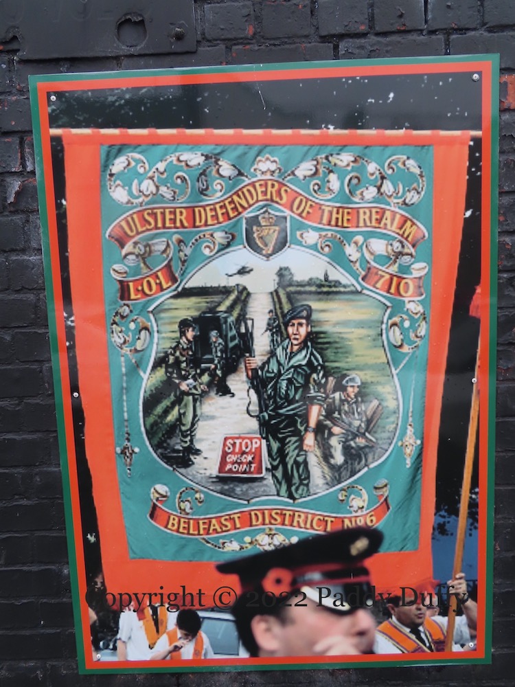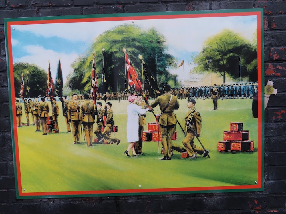These five boards together form a memorial to the UDR and in particular to Privates Fred Starrett and James Cummings, who died in an IRA bombing on Belfast’s Royal Avenue on February 24th, 1988. Both Orangemen, their deaths are commemorated every year by a parade from east Belfast to the city centre.