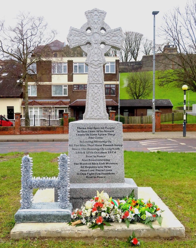 “There are special people in our lives who never leave us even after they are gone. In loving memory of all the men that have passed away since the burning of Long Kesh 15th & 16th October 1974. Rest in peace. Also remembering the blanket men and women, all republicans who have lost their lives in our fight for freedom. Rest in peace. Ní fhéadfaıdís sınn a bhrıseadh [They cannot (lit. would not be able to) break us].”