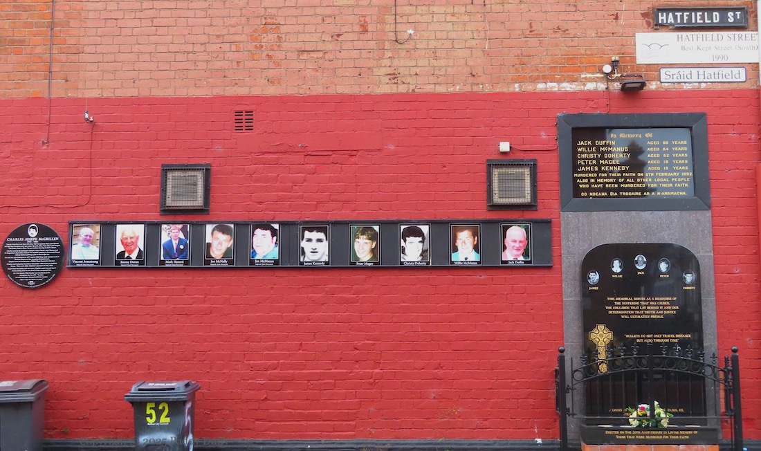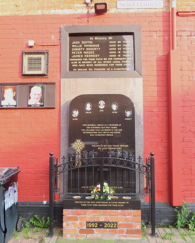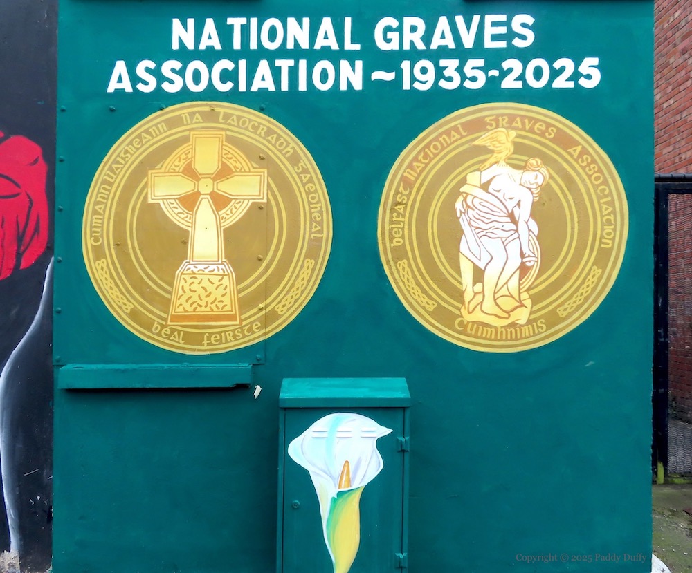 Twelve more of the martyrs – the Troubles-era hunger-strikes – are on the stone across the street (for a close-up, see the Peter Moloney Collection).