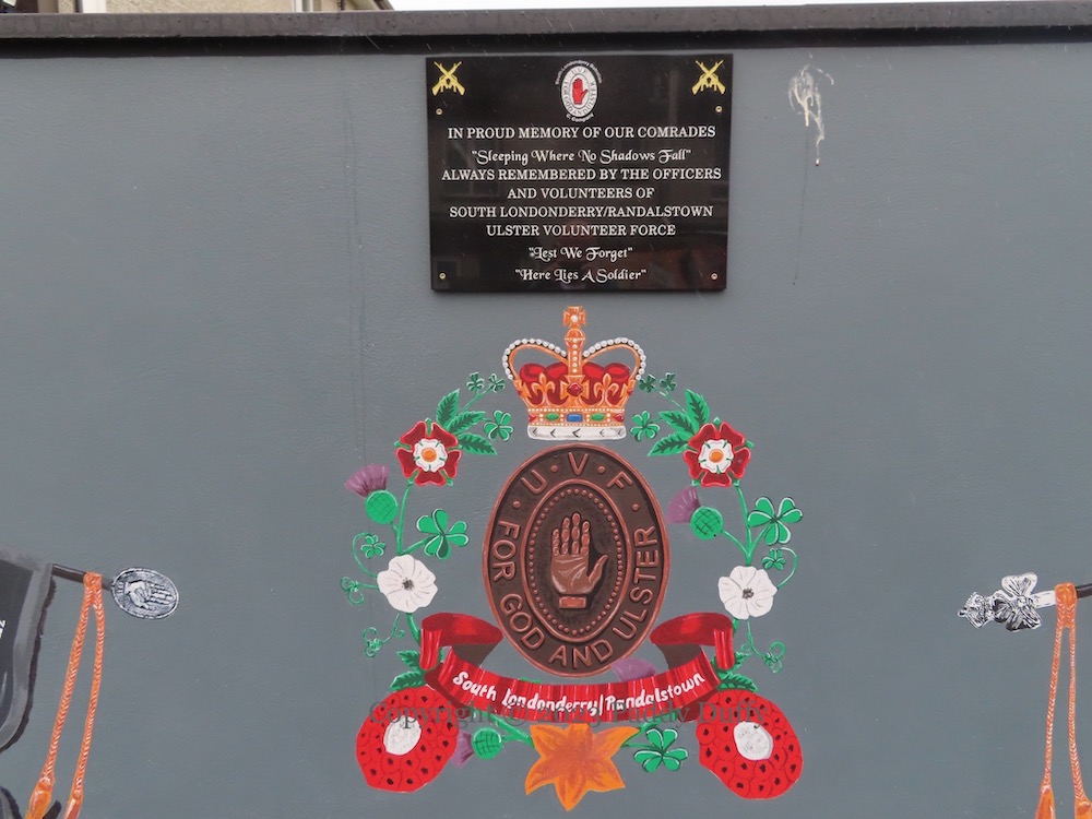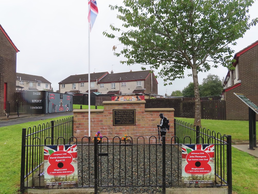 The plaque in the memorial garden (shown below) reads, “This plaque is dedicated in memory of all of the loyalist people of Ulster who have suffered at the hands of the enemies of our land. Lest we forget.”