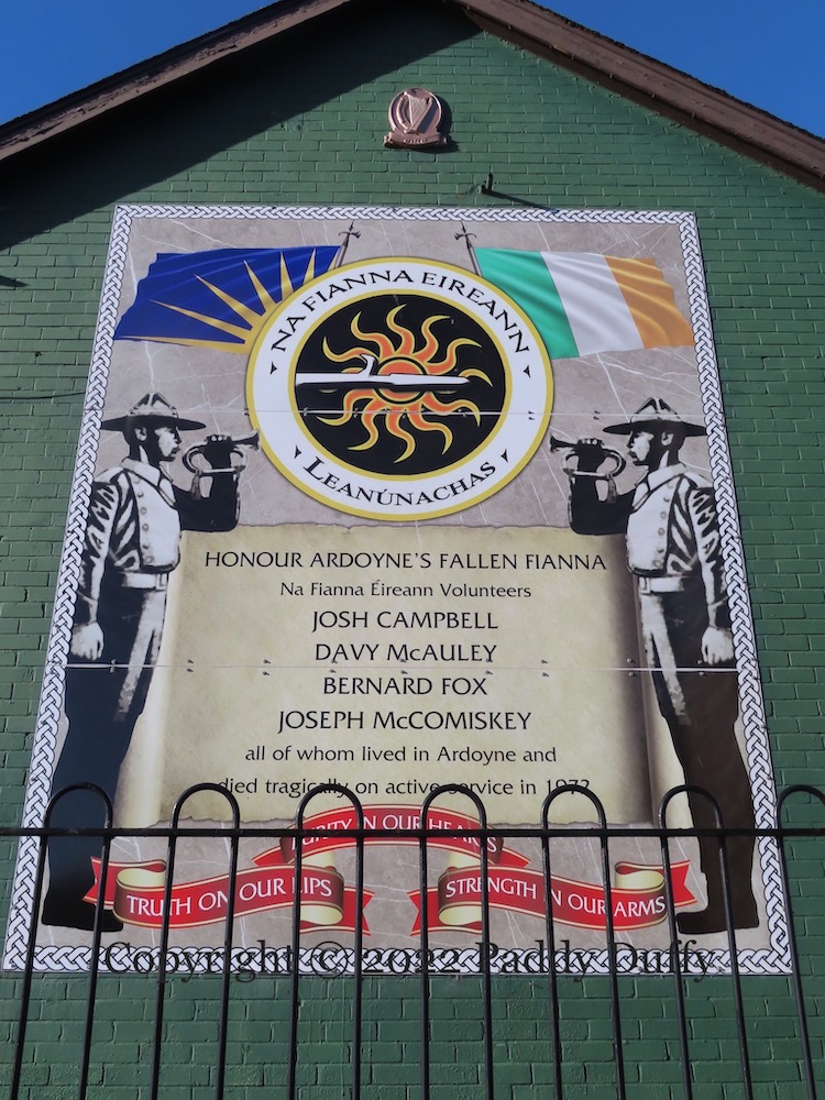 Twelve more of the martyrs – the Troubles-era hunger-strikes – are on the stone across the street (for a close-up, see the Peter Moloney Collection).
