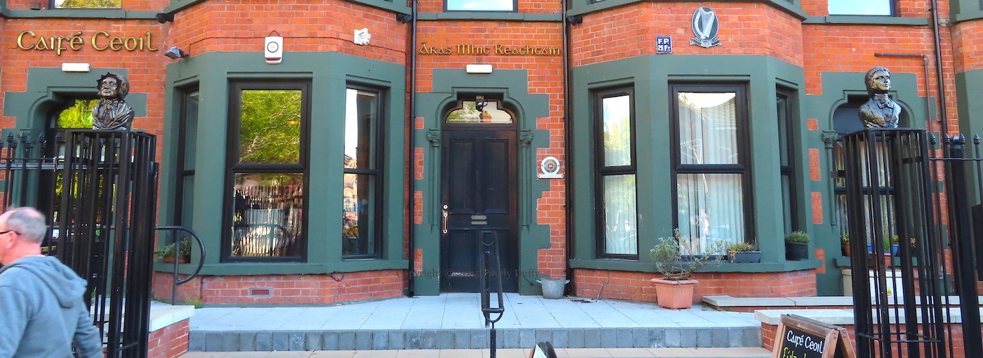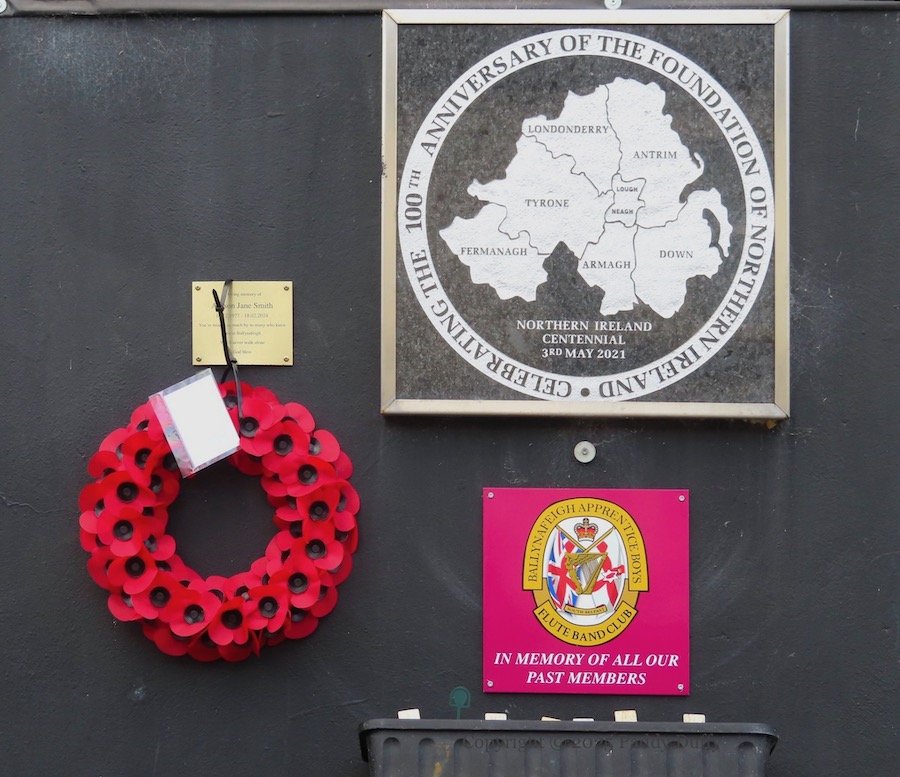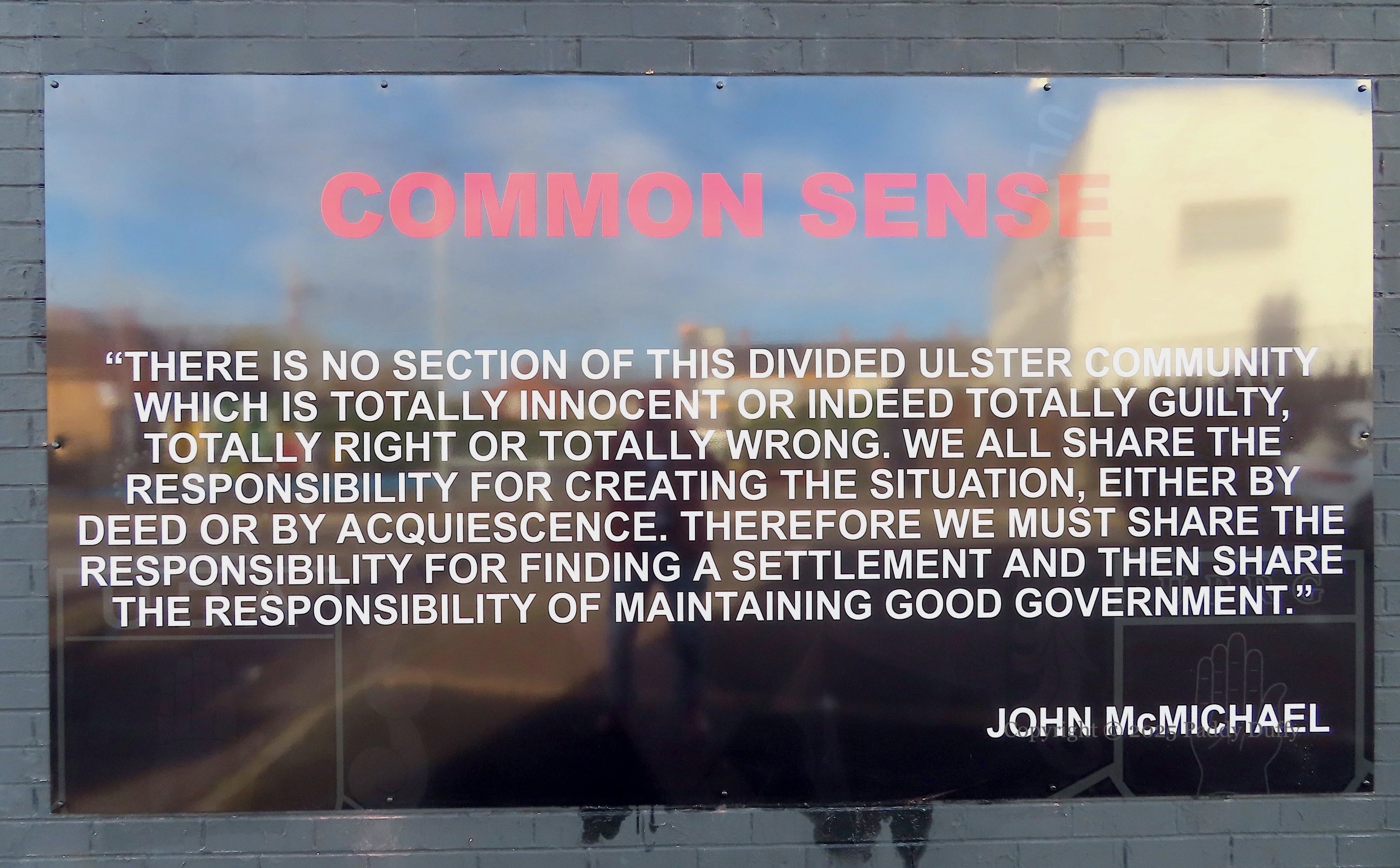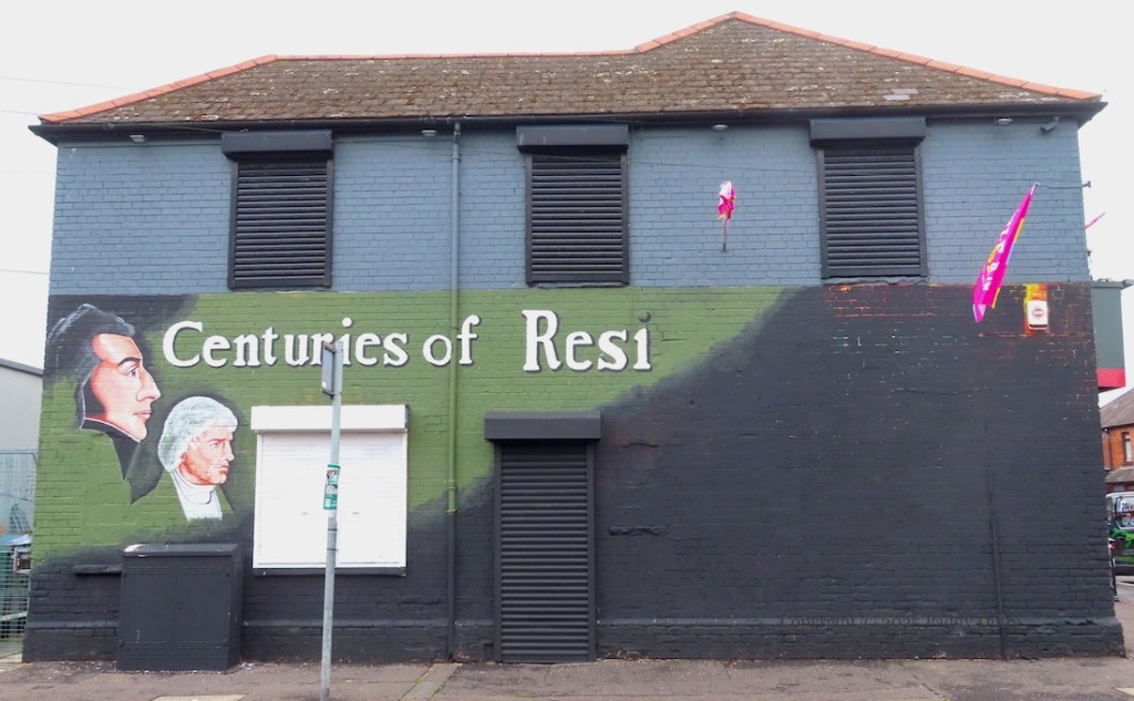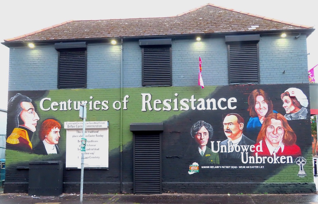 Michael Gaughan and Frank Stagg are presented along with the ten deceased 1981 hunger strikers on the cross-beam of a large wooden “H” at the top of Turf Lodge.