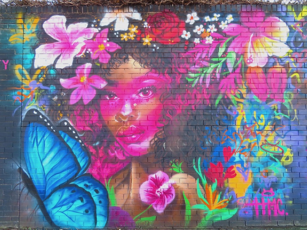 For International Women’s Day (March 8th) HM Constance (web) went to work on Lanark Way (next to Times Change) painting a celebratory piece for SHE Youth Club (“Supporting Her Empowerment” – Belfast Live) that is one of the programmes at R-City (web).