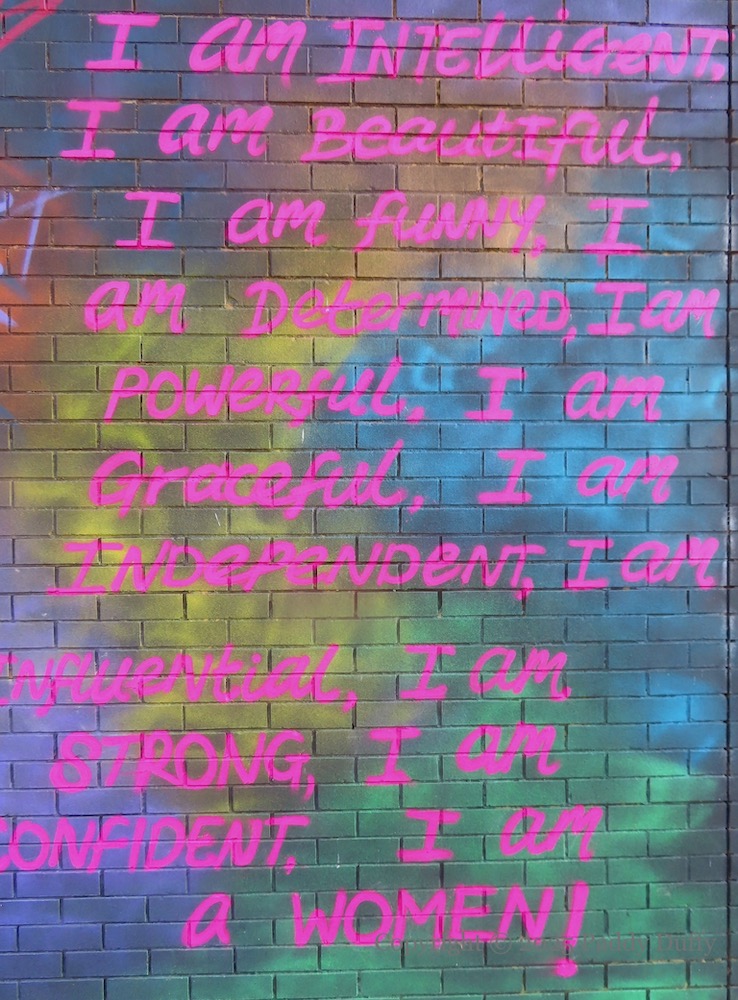 “I am intelligent, I am beautiful, I am funny, I am determined, I am powerful, I am graceful, I am independent, I am influential, I am strong, I am confident, I am a women [sic]”.