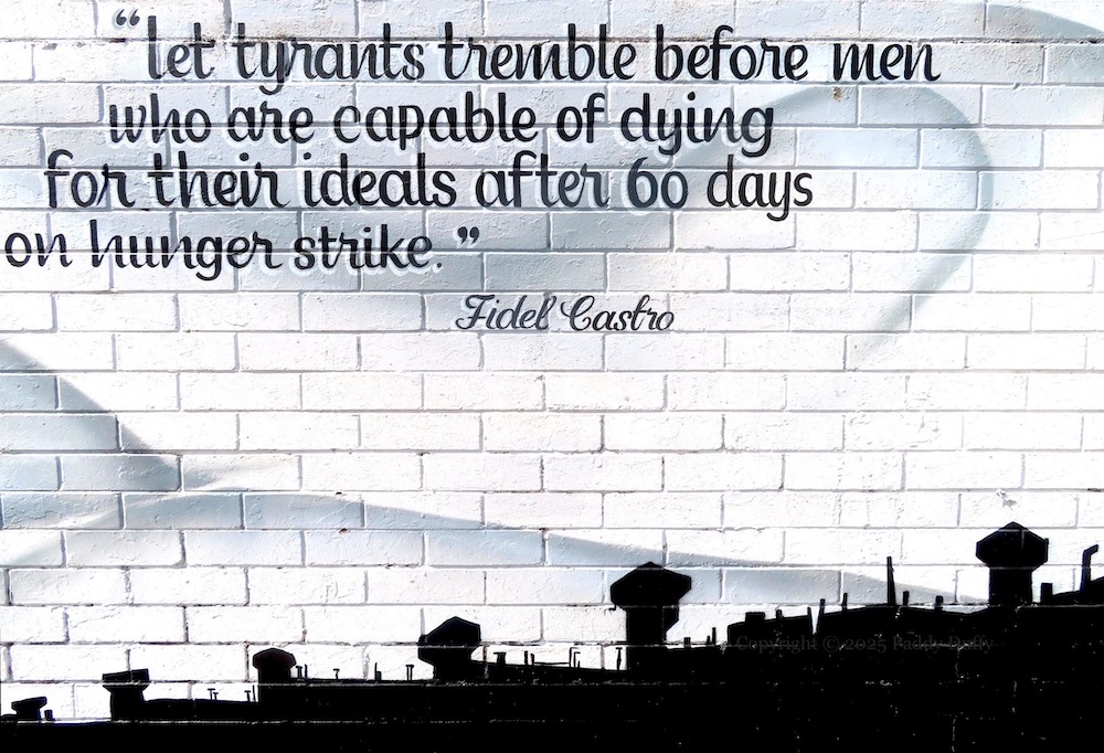 “‘Let tyrants tremble before men who are capable of dying for their ideals after 60 days on hunger strike’ – Fidel Castro” [The line comes from Castro’s opening address on September 15th, 1981, to the Inter-Parliamentary Conference (pdf)]