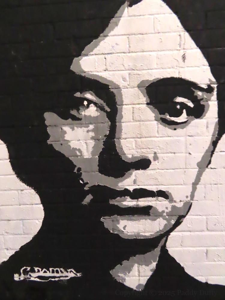 This entry updates Cuımhníonn Doıre from August 2024, in which the central part of the mural, showing Maıréad Farrell (above), was incomplete. In addition to a completed portrait of Farrell there are two quotations from Bobby Sands and one from Fidel Castro (along with a list of the twelve dead hunger-strikers of the Troubles era):