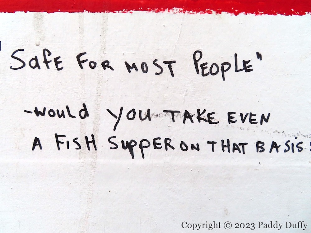 “‘Safe for most people’ – would you take even a fish supper on that basis?”,