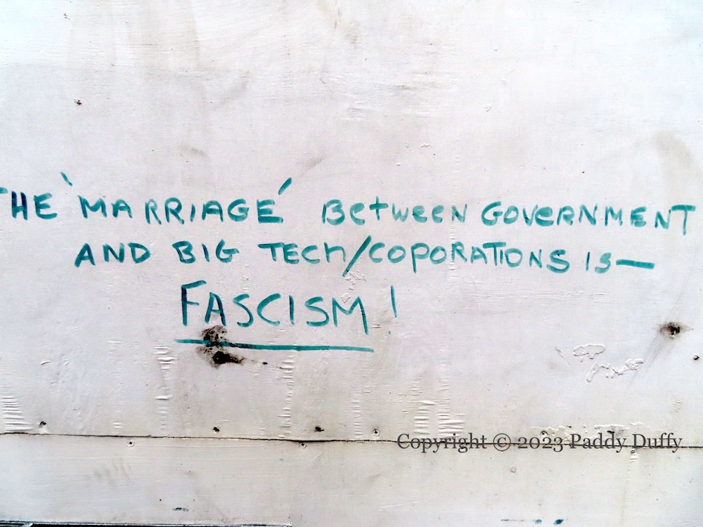“The ‘marriage’ between government and big tech/co[r]porations is — fascism!”,