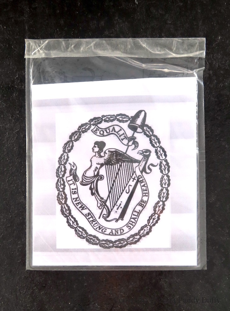 These Lasaır Dhearg (web) stencils and stickers also propose that it is “time for a socialist republic” (drawing inspiration from James Connolly) and that “the PSNI is not a normal police force” (for background see Just Don’t in the Seosamh Mac Coılle collection).