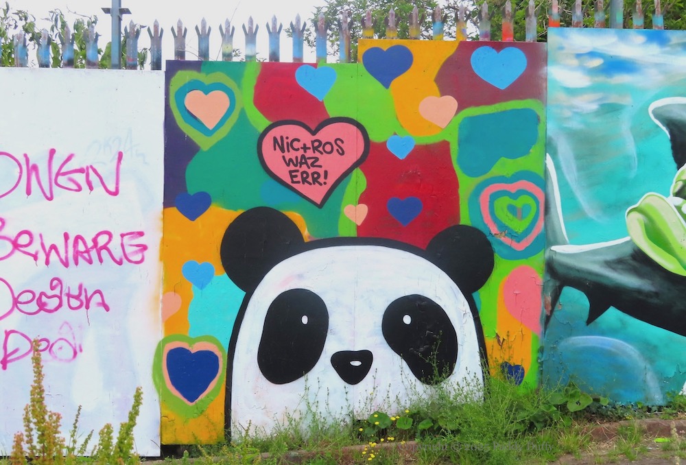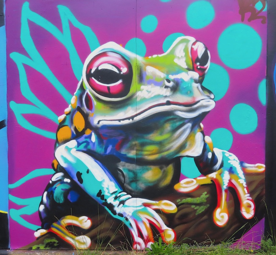 The quick turnover of street art on Queen’s Parade, Bangor, (including the Project 24 space) continues. Here is a gallery of recent work from Cha Cha (ig), Keyto (ig) (three frogs, one in a Dan-Kitchener-style background, and one riding a shark), Ana Fish (web), and TMN crew.