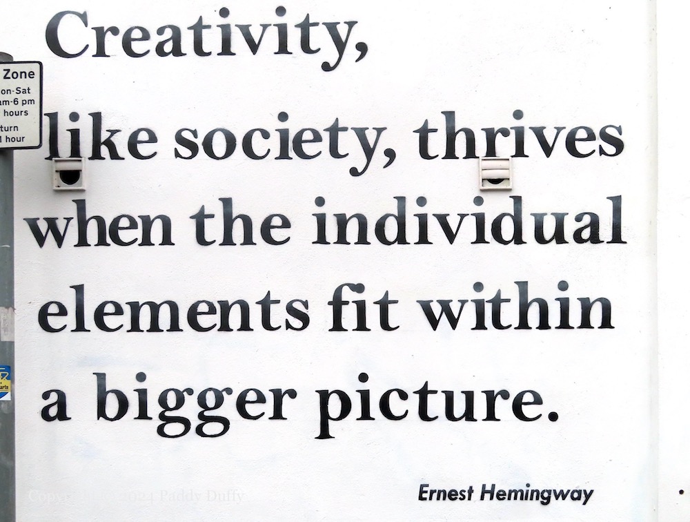“‘Creativity, like society, thrives when the individual elements fit within a bigger picture’ – Ernest Hemingway”