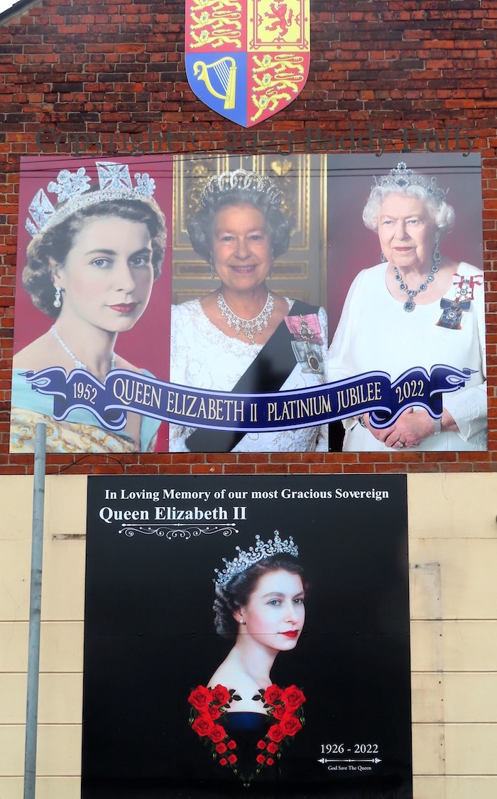 “In loving memory of our most gracious sovereign – Queen Elizabeth II 1926-2022. God save the Queen.” The platinum (70th) jubilee of Queen Elizabeth II, celebrated in June, 2022, was followed a short time later by her death, on September 8th. These two boards in Maldon Street, mark the two events.