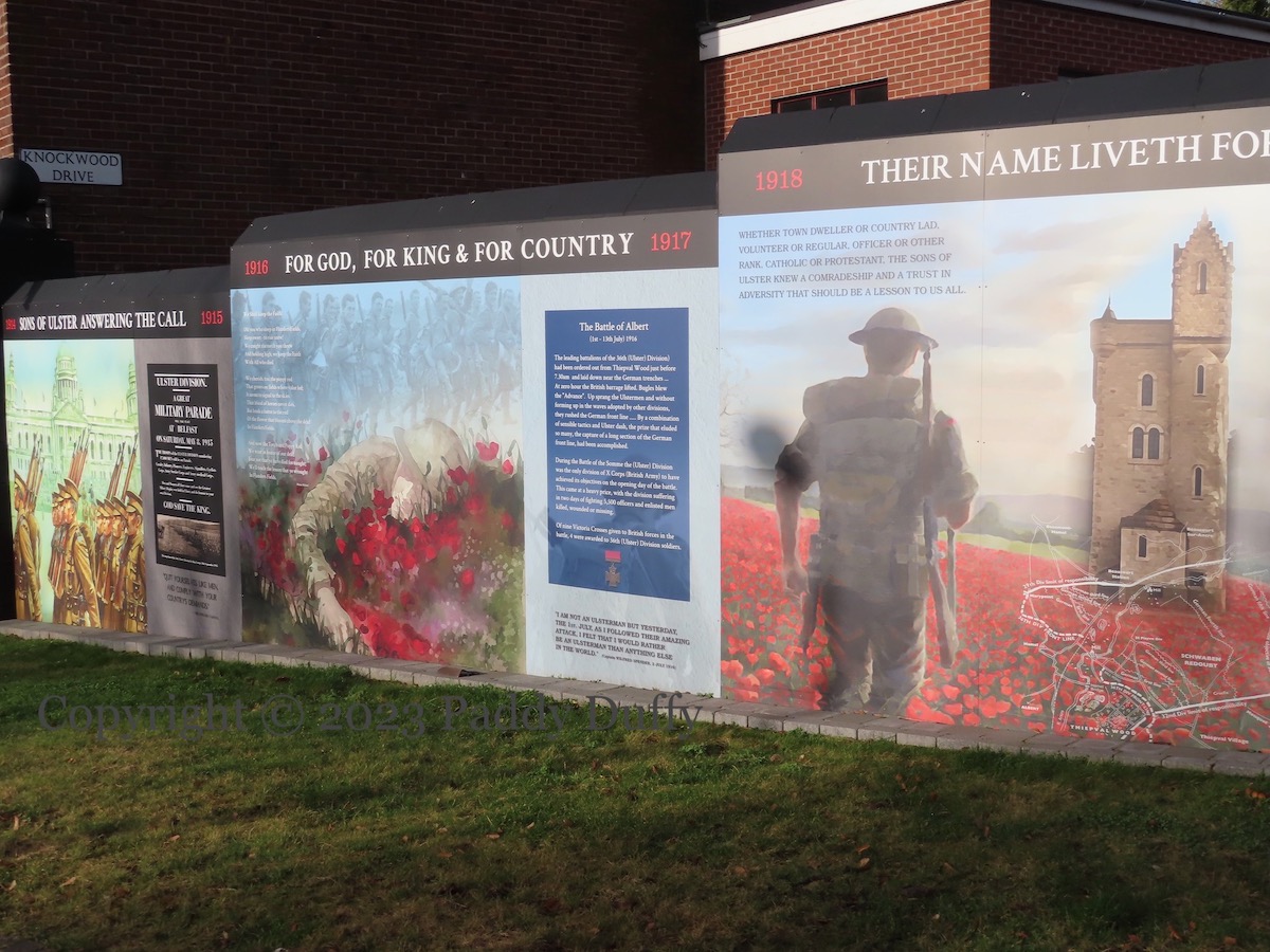 A history of the 36th (Ulster) Division in three panels along Knockwood Crescent in east Belfast: