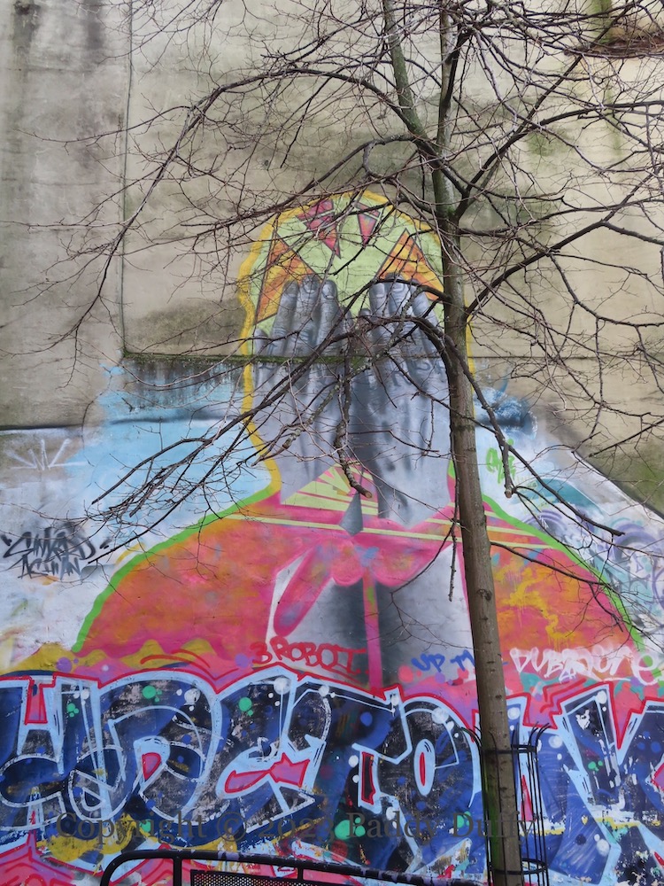 The Malojian (Fb) mural (shown below) on the Oh Yeah Centre was the idea of Lyndon Stephens, founder of Quiet Arch records, and when he died in January 2020 after a long illness (Hotpress), Stevie Scullion returned the favour by organising the painting of a mural by Jonny McKerr (JMK) & Dermot McConaghy (DMC) the following November (Dig With It).