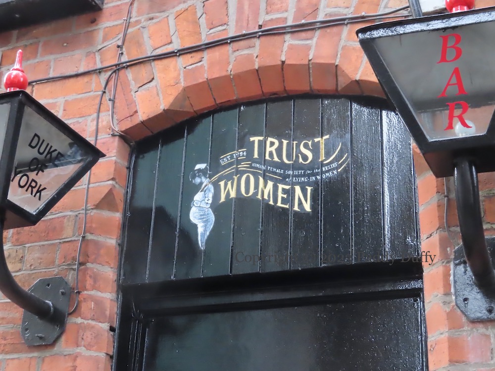 Belfast’s first maternity hospital – the Humane Female Society For The Relief Of Lying-In Women – was in Donegall Street, perhaps in the building that sat over the Exchange Place entry, from 1794 to 1830, when it moved to Clifton Street (Mcafee). It was run entirely by women (info board in I Was Sick And Ye Visited Me).