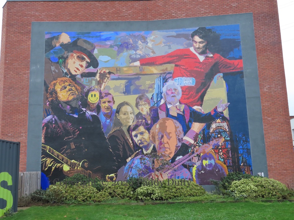 Famous faces and landmarks from east Belfast: Van Morrison, CS Lewis, George Best, David Holmes, Harland & Wolff, Holywood Arches, Strand Arts Centre, Danny Blanchflower, Lucy Caldwell, Marie Jones, Sam McCready, Gary Moore, James Ellis, St Mark’s Dundela, Eric Bell, Dee Craig (the artist).
