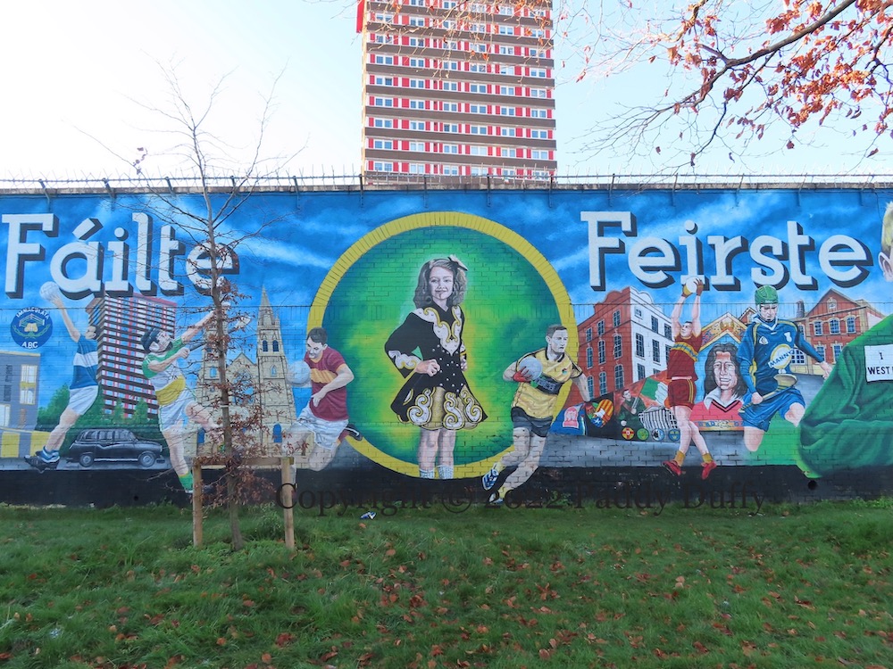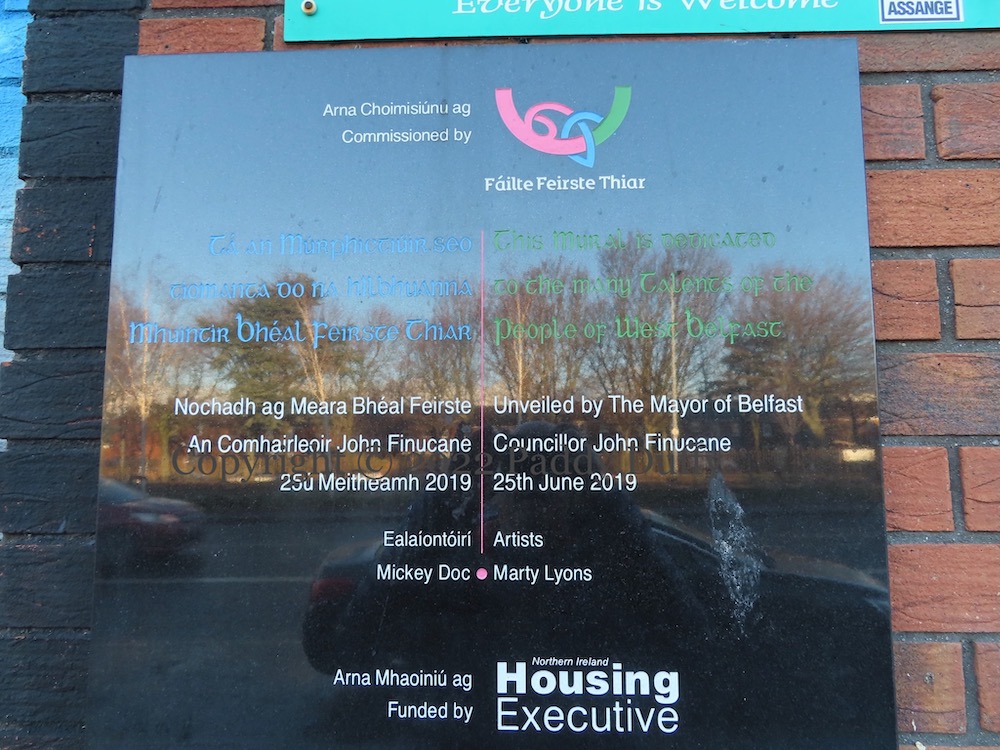 Fourth, Australian Manufacturing Workers Union (amwu.org.au) sponsored the mural above in Conway Street. Then-secretary Craig Johnston is on the left in the back. The flag to the right is the flag of the Eureka Stockade. It joins others sponsored by Australian groups: A Bunch Of Live Wires (sponsored by the Electrical Trades Union) | Caırde Sınn Féın | Australian Aid For Ireland & Saoırse Melbourne. “Casement Memorial – In proud memory of the 10 Republican prisoners who died on hunger strike in “H” blocks of Long Kesh in 1981. ‘It is not those who can inflict the most but those who can endure the most who will conquer’ – Terence McSwiney. Unveiled by Martin McGuinness, Sınn Féın MP MLA Minister for Education Wednesday 6/12/2006 Donated by AMWU, Craig Johnston Secretary.”