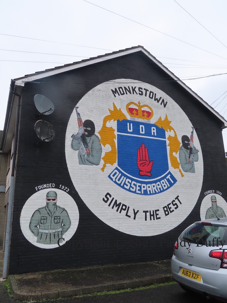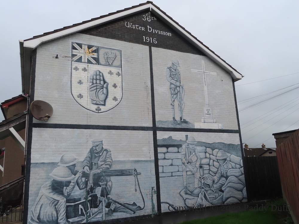 An estimated 100,000 people congregated at Craigavon House on the 23rd of September, 1911, to hear Edward Carson’s inaugural speech as Unionist leader (McNeill Ch. 4). In his speech he said “Our demand is a simple one. We ask for no privileges, but we are determined that no one shall have privileges over us. We ask for no special rights, but we claim the same rights from the same government as every other part of the United Kingdom. We ask for nothing more; we will take nothing less”. Ten years later, in 1921, Northern Ireland was created and it has survived to reach its centenary, despite (according to this mural) “100 years of fighting a fascist republican enemy sponsored by the Irish state.”