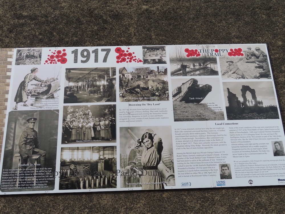 The 1917 board in the Poppy Trail series celebrates female munitions workers as well as making local connections to the battles of 1917: George Cairns of Roden Street and Thomas Fitzpatrick of Cullingtree Road.