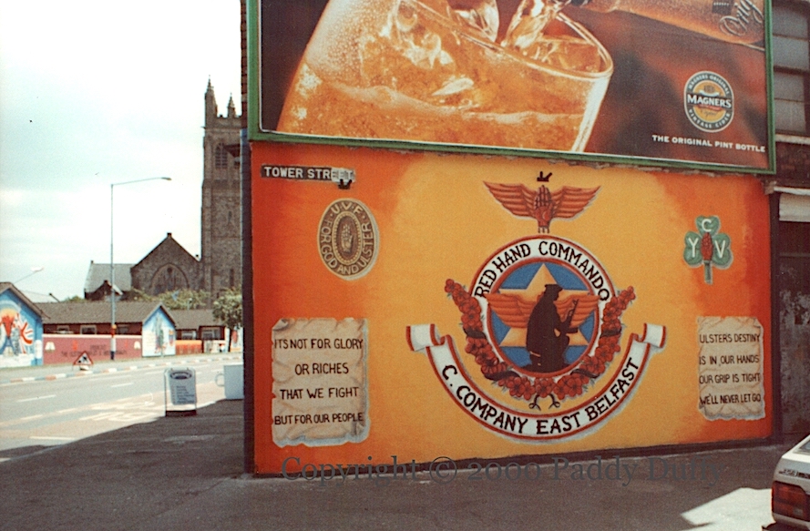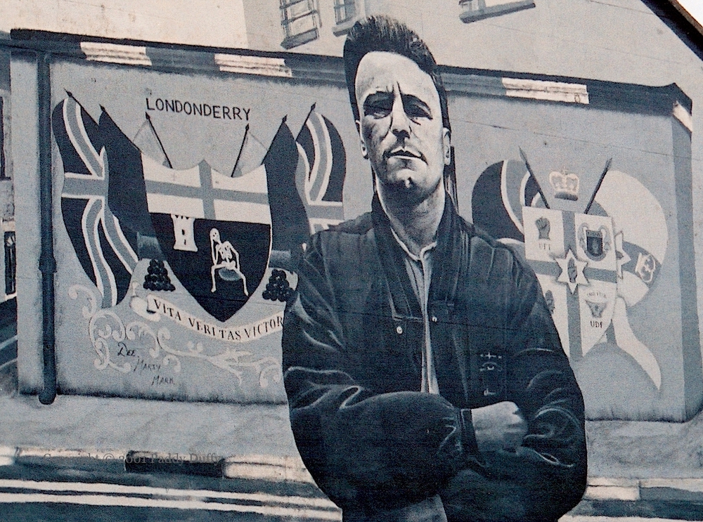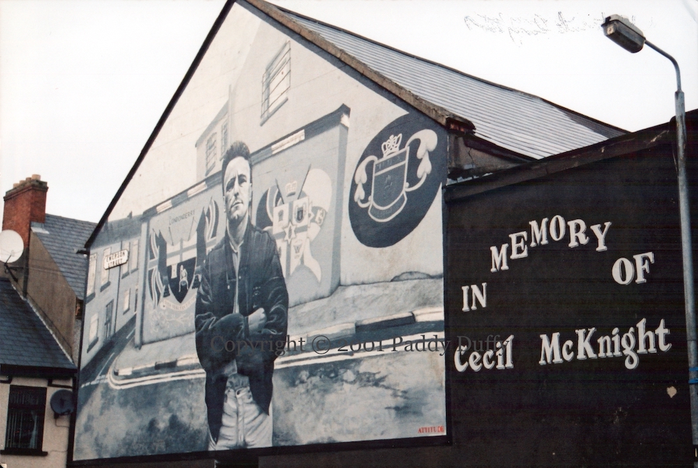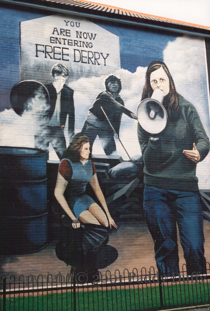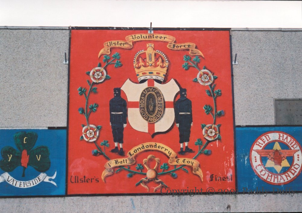 The fourth mural by the Bogside Artists (Visual History) shows the faces of the fourteen people who died on or as a result of Bloody Sunday, January 30th, 1972, shot by the “gun-happy louts” (as described by the Belfast UDA; Vanguard also called for their removal – see the entry for Robert McKinnie in Lost Lives) of the 1st Parachute Regiment; 15 more people were injured.