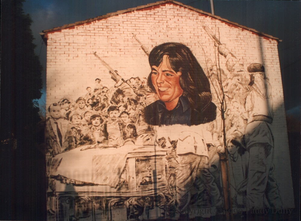 12-year-old Carol Ann Kelly was shot by the British Army on May 22nd, 1981, and died three days later. Eight other children are remembered in this mural: Tobias Molloy, Frances Rowntree, Seamus Duffy, Paul Whitters, Stephen McConomy, Brian Stewart, Stephan Geddis, and Julie Livingstone. Molloy and Rowntree were killed by rubber bullets, the rest by plastic bullets.