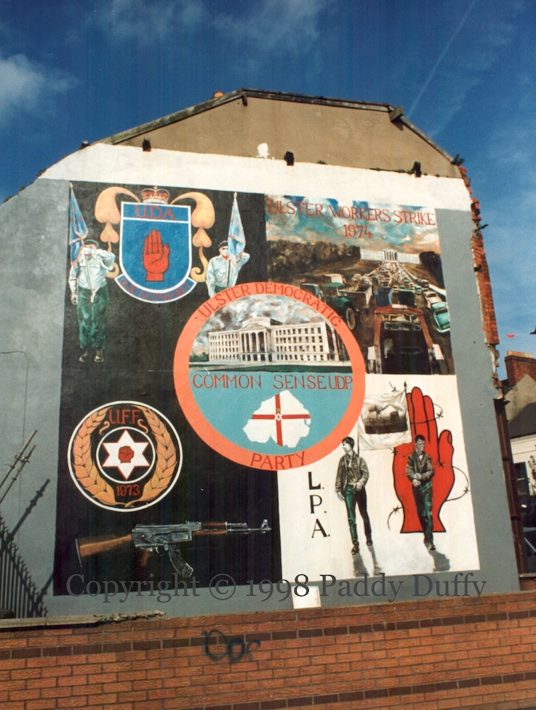 The Ulster Democratic Party (UDP) was the political wing of the UDA, and supported a policy of an independent Northern Ireland (as described in the policy document ‘Common Sense‘). It won a few council seats in the late 1980s and early 1990s (and dissolved in 2001) (BBC-NI).